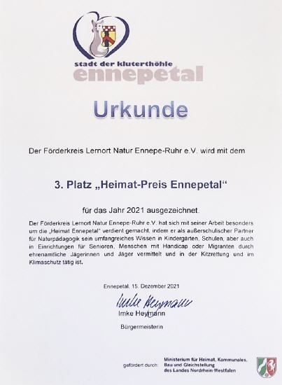Heimatpreis der Stadt Ennepetal für Lernort Natur